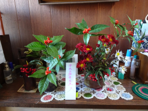 2018/1/1 母が生けた花。屋上で咲いてたキクだと思う。